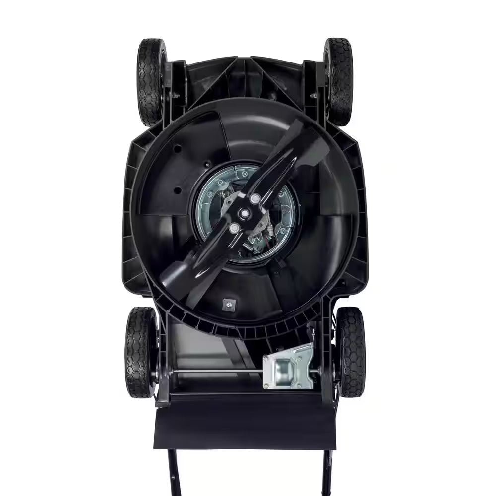 •Self-propelled lawn mower with foldable, adjustable handlebars and tool-free adjustments.
